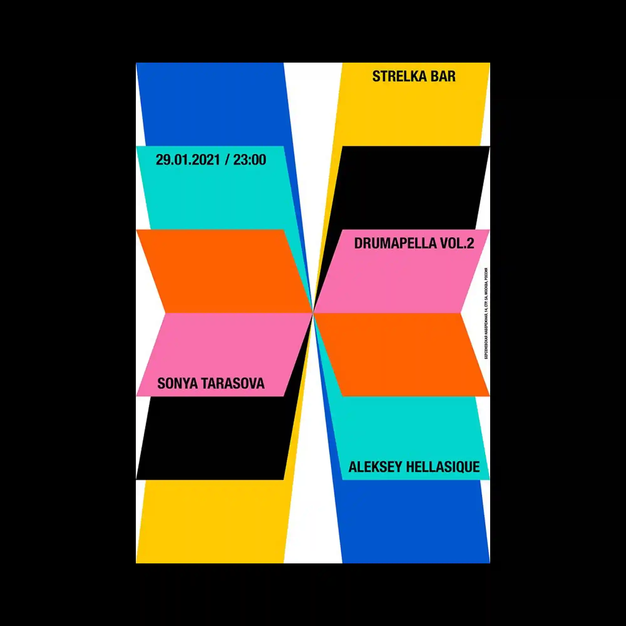 @i_ira | Thin black grid lines curve dynamically across a white background, forming an illusion of warped architectural surfaces. The minimal typography, placed around the edges, enhances the diagrammatic feel. The bending structure implies perspective and tension within a two-dimensional space. The poster balances precision and elasticity through disciplined simplicity.