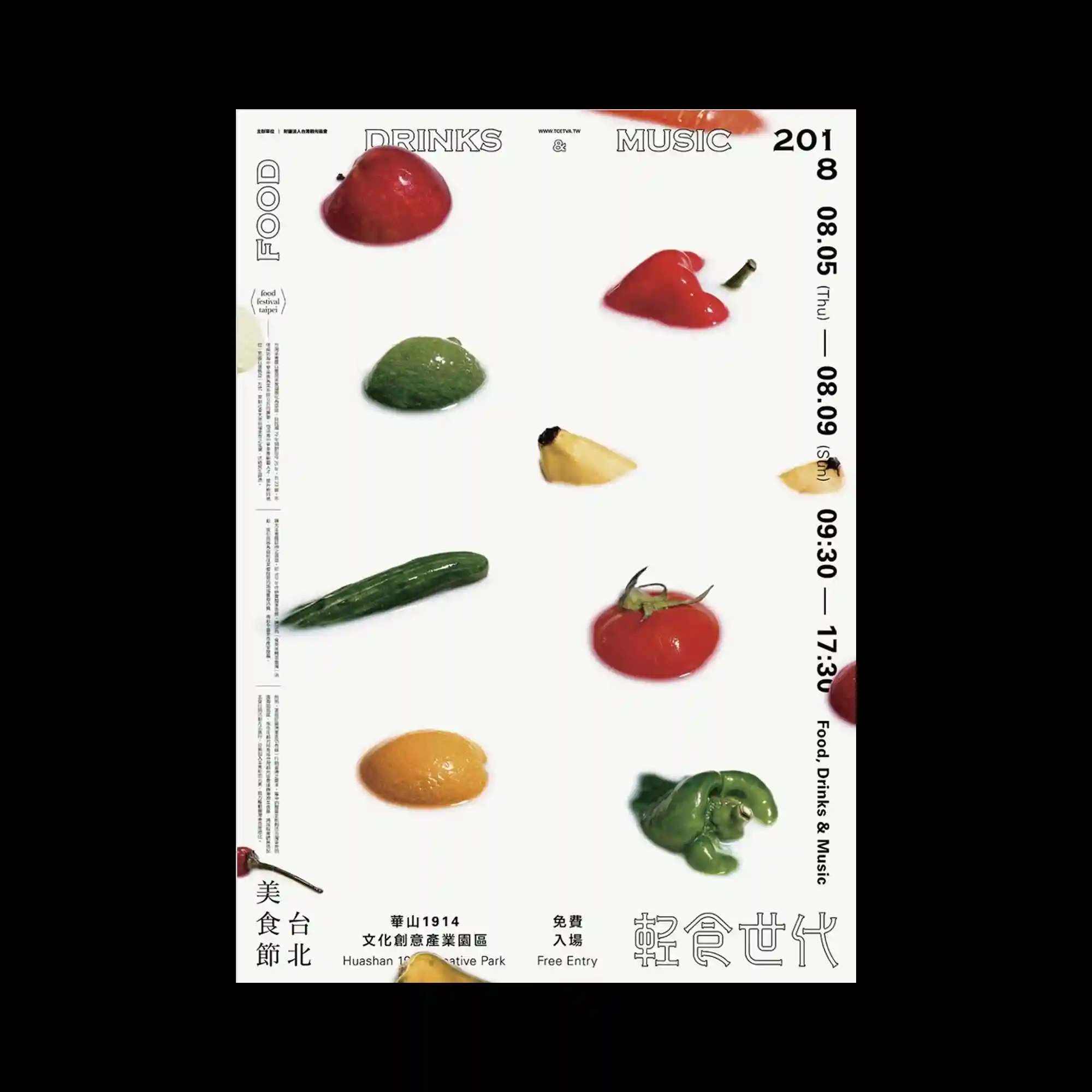 Kuan-Wen Chen | A minimalist white layout presents scattered fruits and vegetables, each isolated against clean space. The glossy textures and slight shadows create a hyperreal photographic quality. The composition’s order and spacing recall a museum display or scientific taxonomy. The restrained design emphasizes material beauty through clarity and precision.
