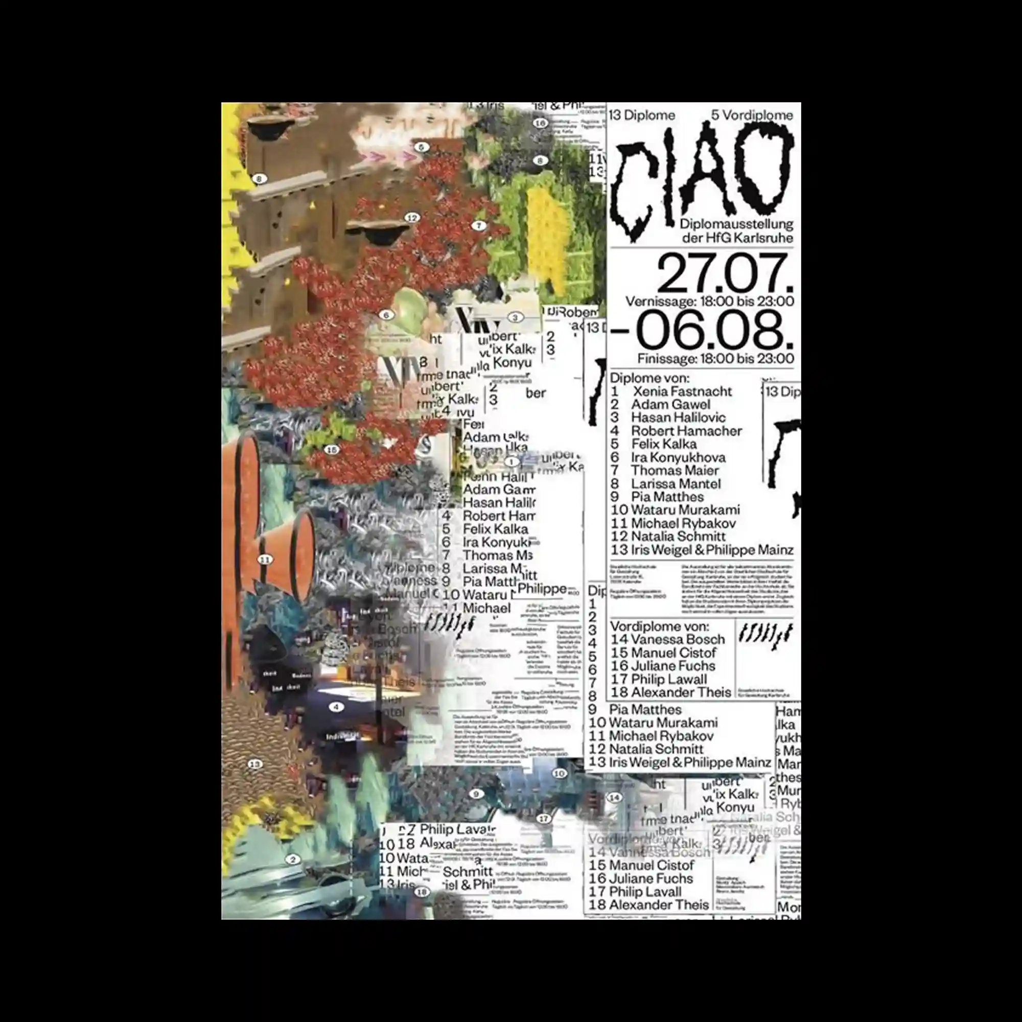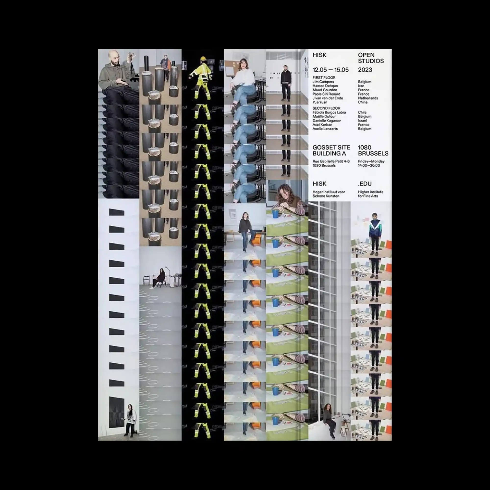 @bernardo.berga | A vertical collage of repeated figures and objects paired with minimalist event text creates a structured and visually rhythmic poster.