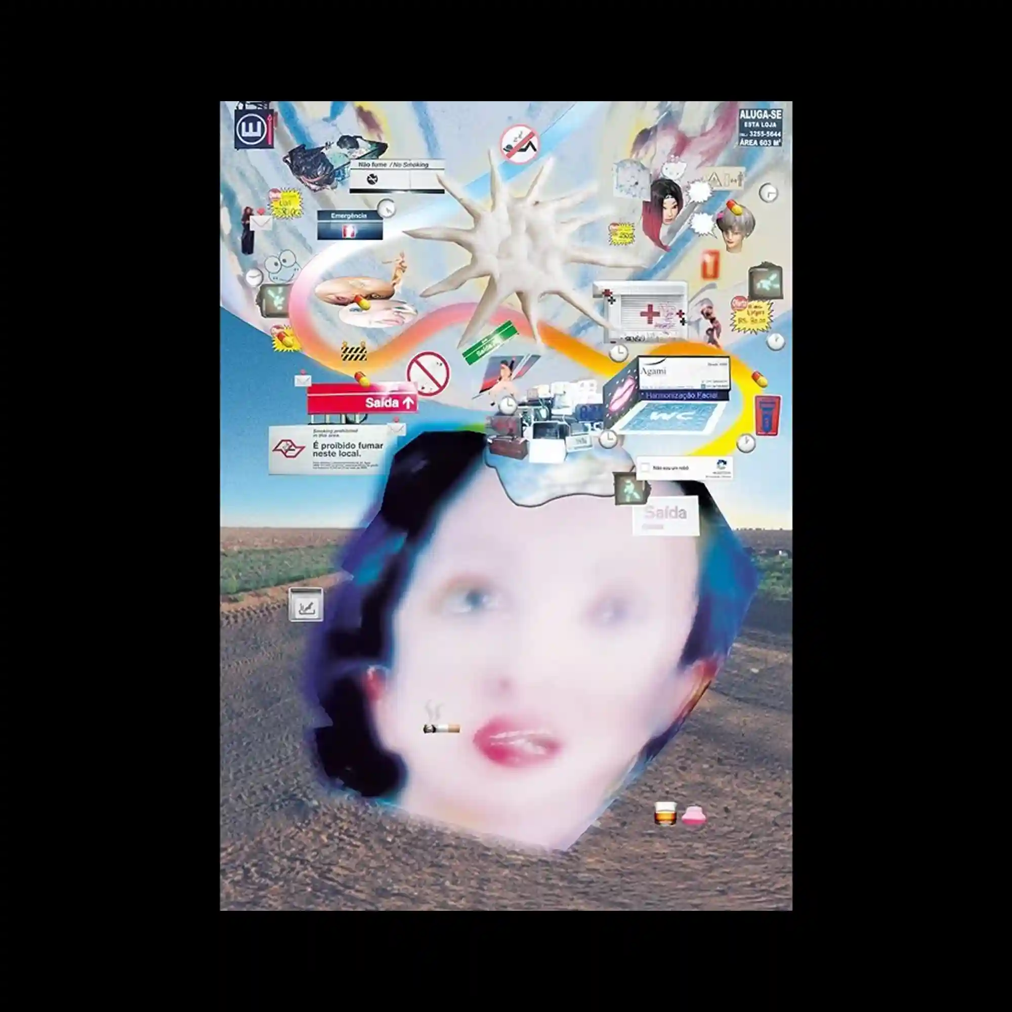 @jparnet | Chaotic collage of surreal elements, retro UI icons, pharmaceutical labels, and a dreamy blurred face, forming a post-internet visual overload.