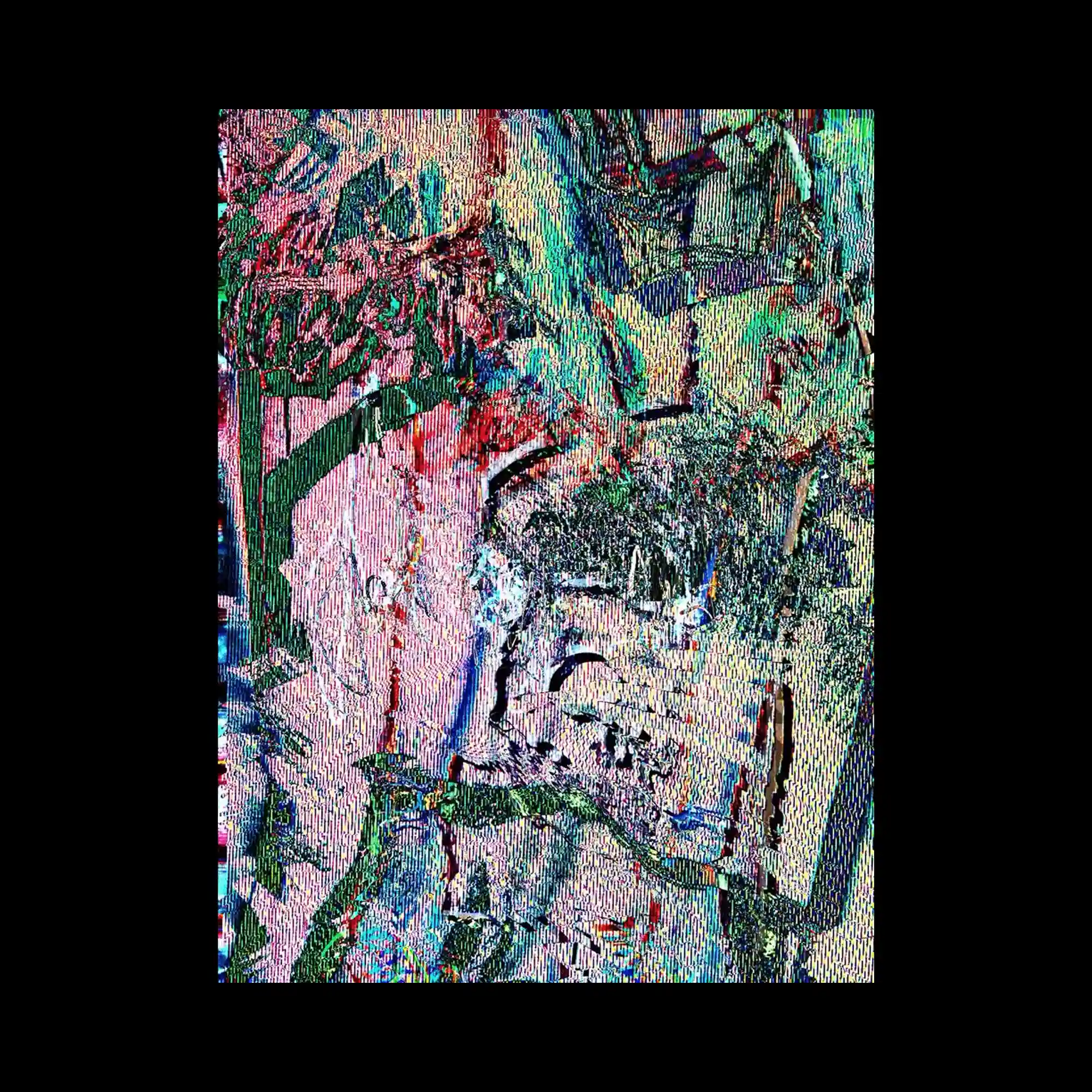 A highly textured, pixelated abstract image with RGB color noise and scanline distortion; the original content is obscured by visual interference.